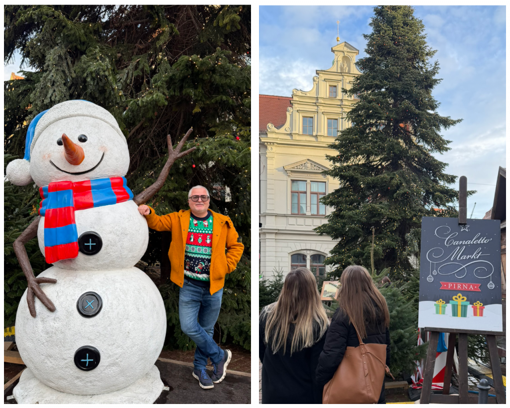 Anschließend ging es los zu unserem nächsten Ziel: der weihnachtliche Canaletto Markt in Pirna. Zwischen festlichem Lichterglanz, liebevoll dekorierten Buden und verführerischem Duft von Glühwein, Kräppelchen und gebrannten Mandeln wurde viel gelacht, genascht und natürlich auch die ein oder andere Überraschung für die Liebsten daheim eingekauft.